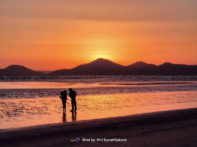 Masya Allah, indah sungguh pemandangan! Sunset yang paling cantik pernah ciksun tengok selama dekat Busan! Alhamdulillah! Tapi nak amek gambar dan video dia, hebat sungguh cabaran yang ciksun kena lalui. Hahaha! Sebabnya, tepi pantai laut lepas macam tu, angin laut sangat-sangat kuat. Bayangkan lah dengan suhu terlalu sejuk tambah dengan angin, bila kena tangan yang terdedah pegang handphone, bukan takat rasa nak beku. Dah rasa nak terbakar tangan ciksun masa tu. Dalam 5 minit jugak ciksun panik, jauhkan diri dari pantai, cari tempat berumput panjang sebab dah tak tahan. Lega lepas 5 minit tangan rasa okay balik. Allahu. Heran sungguh ciksun dengan yang duduk tengah laut tu, macam mana haaa diorang boleh tahan? 😩